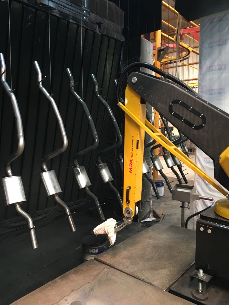 6686体育艾普机器人可完成对喷涂机器人的设计并对相关产品提供定制化解决方案,:如汽车轮毂、排气管、铝塑、五金等可以悬吊方式的喷涂的相关产品。 根据客户生产要求,我们的喷涂机器人可以和悬吊线(正反向传输均可)配合进行喷涂工作,也可利用用户现场已有的传输装置进行适应性改造。